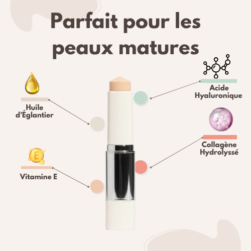 “Selon un article de Cosmopolitan dédié aux peaux matures, les femmes de 40+ recherchent avant tout un fond de teint qui unifie, hydrate et illumine sans figer les traits. Le Stick KBB™ de Maison Almudena a été conçu exactement dans cet esprit : soin + maquillage + confort immédiat, dans une formule adaptée à la réalité de votre peau.”